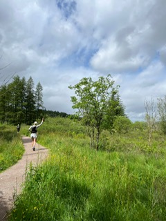 The next section through the forest and up Minch Moor was the most enjoyable part of the race. I felt relatively strong on the climbs and loved the descents. At the forest track, the route split for the 65k runners, and the descent after this point was so much fun- I felt like I was flying. Reaching the 20-mile point was a great feeling, and for a while, I was completely alone, running down the track like a kid, weeeeeeeeeeee!